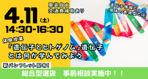 4/11(土)★来校型★【体験講義:遺伝子とヒトゲノム】総合型選抜《入試相談受付中‼》