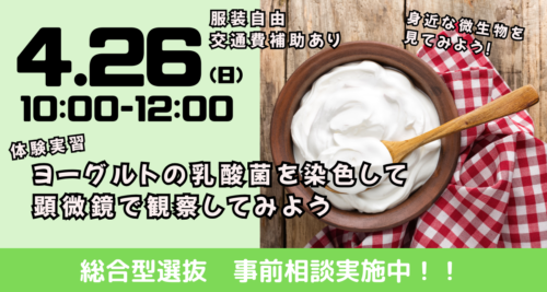 4/26(日)AM★来校型★【体験実習:身近な微生物を見てみよう!】総合型選抜《入試相談受付中‼》