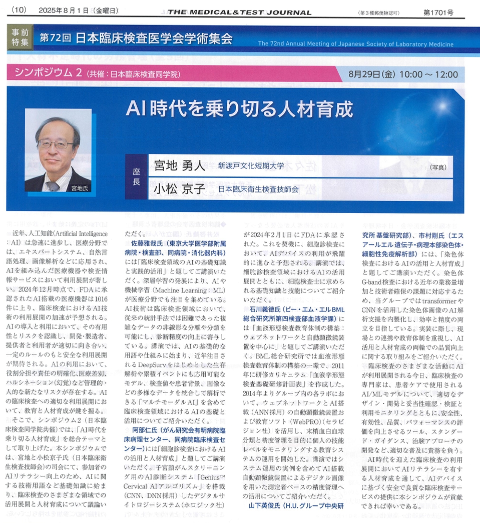 掲載メディア:MTJ THE MEDICAL & TEST JOURNAL 第1701号(2025年8月1日)(発行所 ㈱じほう)