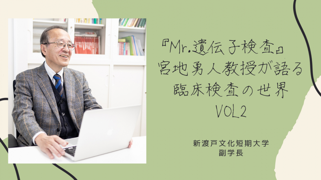 > 2022.08.09 臨床検査学科:メディア掲載多数、臨床検査の世界で知らない人がいない『ミスター遺伝子検査』こと宮地勇人教授(新渡戸文化短期大学 副学長)インタビュートーク【VOL1・VOL2】 インタビュー 臨床検査 ホームキャンパスブログインタビュー臨床検査学科:メディア掲載多数、臨床検査の世界で知らない人がいない『ミスター遺伝子検査』こと宮地勇人教授(新渡戸文化短期大学 副学長)インタビュートーク【VOL1・VOL2】 コロナで万人が知ることになった『PCR検査』。 その第一人者であり、昨年日本で開催された国際的なスポーツイベントにも尽力された宮地先生。 臨床検査国家試験の問題作成なども歴任してこられた宮地教授が語る、臨床検査の未来! VOL1の映像はこちら! VOL2の映像はこちら! 前の記事へ食物栄養学科:エシカルフードの第一人者『やまけん(客員教授 山本謙治先生)』のインタビュートークUPしました!【VOL1・VOL2】 次の記事へ食物栄養学科:大盛況!! 中野区との連携事業『夏休み親子クッキング』 Campus Blog同じカテゴリーの記事 2026.02.21 フードデザイン学科:事務局メンバーがリクルート進学総研のインタビュー記事に掲載されました🎤 インタビューブログ 食物栄養学科・フードデザイン 2026.01.23 🔬臨床検査学科:未来を創る先輩たちのストーリーVol.6 インタビューその他ブログ 臨床検査 2026.01.07 🔬臨床検査学科:未来を創る先輩たちのストーリーVol.5 インタビューその他ブログ 臨床検査 2025.12.02 🔬臨床検査学科:未来を創る先輩たちのストーリーVol.4 インタビューその他ブログ 臨床検査 2025.11.15 🔬臨床検査学科:未来を創る先輩たちのストーリーVol.3 インタビューその他ブログ 臨床検査 2025.10.07 🔬臨床検査学科:未来を創る先輩たちのストーリーVol.2 インタビューその他ブログ 臨床検査 2025.09.29 🔬臨床検査学科:未来を創る先輩たちのストーリーVol.1 インタビューブログ 臨床検査 2024.01.10 なかなか聞けない在学生の本音トークインタビュー集upしました! @2023新渡戸祭 インタビュー 臨床検査食物栄養学科・フードデザイン