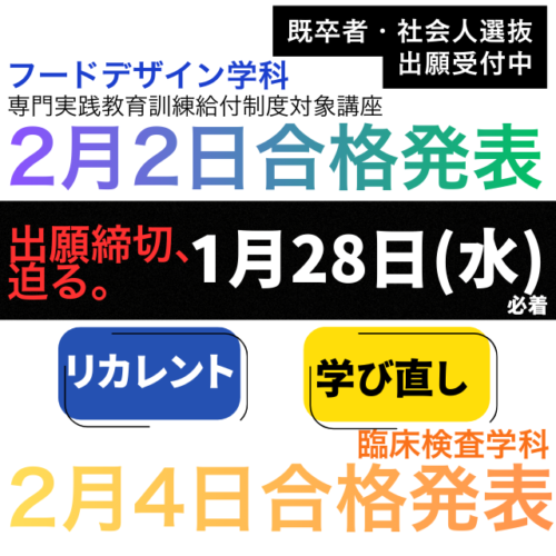 重 要 🌸1月28日(水)出願締め切り、迫る。【既卒者・社会人選抜】