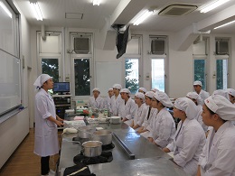 「フードサービス」コースは「冷凍食品セミナー」、「医療と福祉」「健康と運動」コースは「治療に影響を及ぼす食品」について学びました。