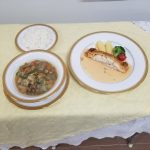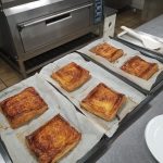 9/27の実習メニューは、すずきのパイ包み焼き(パイ生地ですずきと帆立のムースを包み、さっくりと焼き上げた料理)と、レンズ豆とキャベツのスープでした。