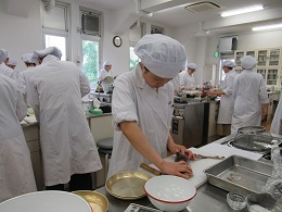 2年生は、学ぶ料理の種類も増えてきます。一つ一つの調理をより丁寧に手早く行うことを心がけながら実習しています。