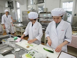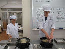 2年生は、学ぶ料理の種類も増えてきます。一つ一つの調理をより丁寧に手早く行うことを心がけながら実習しています。