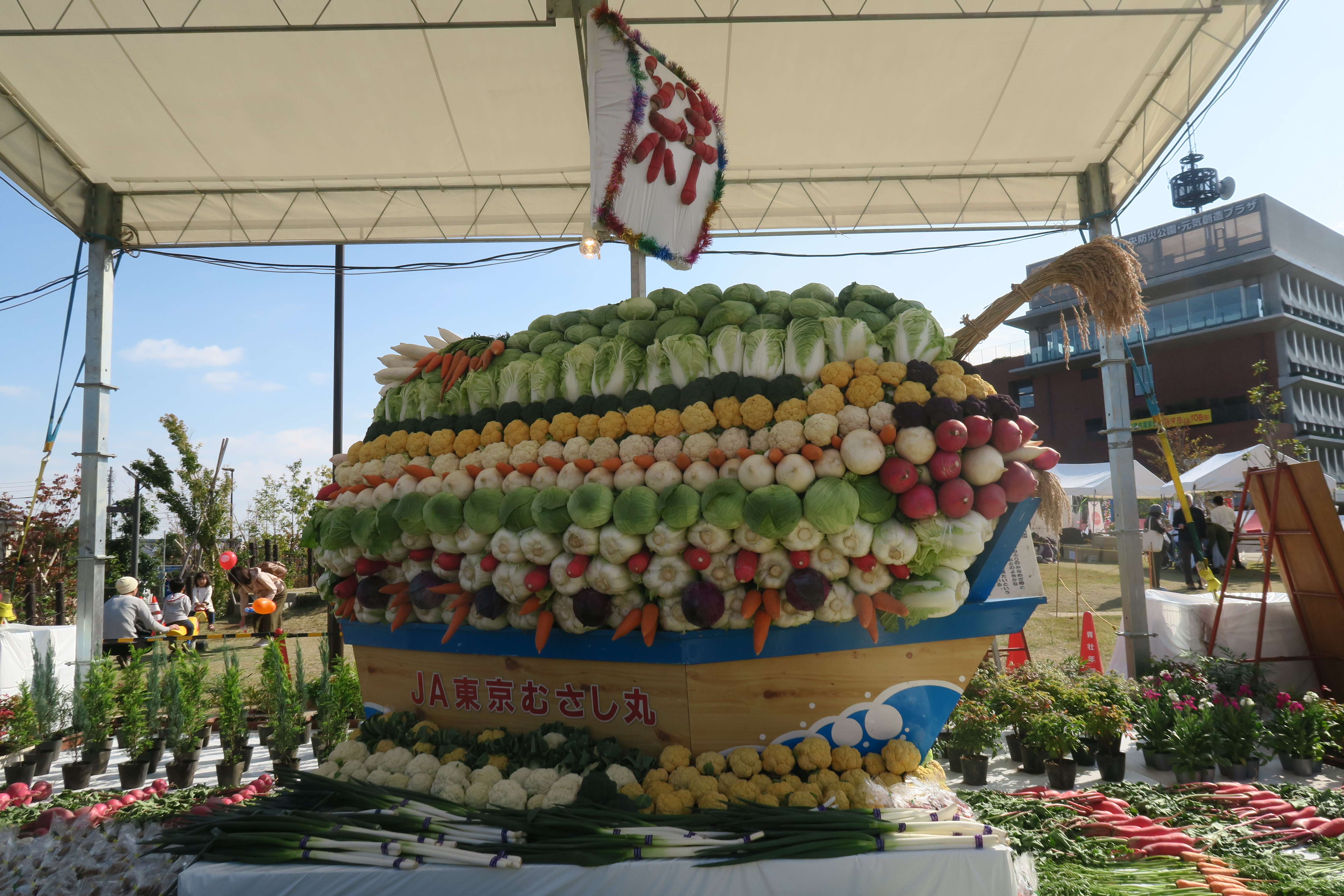 今年も『三鷹市農業祭』に行ってきました。野菜を使った大きな『宝船』や小学生が書いた『農のある風景画(食育カレンダー)』の展示に、きれいに並べられた農産物の品評会の様子を見ることができました。また、三鷹の野菜をたっぷり使用したムーちゃんコロッケや餃子を試食し、三鷹祭を満喫しました♪天気もよく、食育活動の様子を見学することができ、栄養士の学びの一つとなりました!明日も開催しています。皆さんも是非、足を運んでみて下さい。三鷹産ブルーベリーのわたあめもおすすめです!M.N