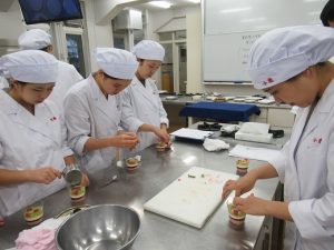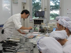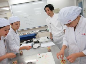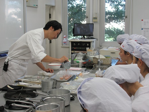 ゼラチンの異なる食材との組み合わせ方、美しく見せる盛り付け方、珍しいタルト生地の作り方などを教えていただき驚きと学びの多い実習となりました。