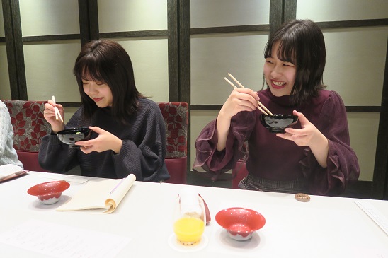新宿の京王プラザホテル2階 「和食 かがり」の料理長 八木澤大輔先生による新渡戸文化短期大学のための特別コースを いただきました。