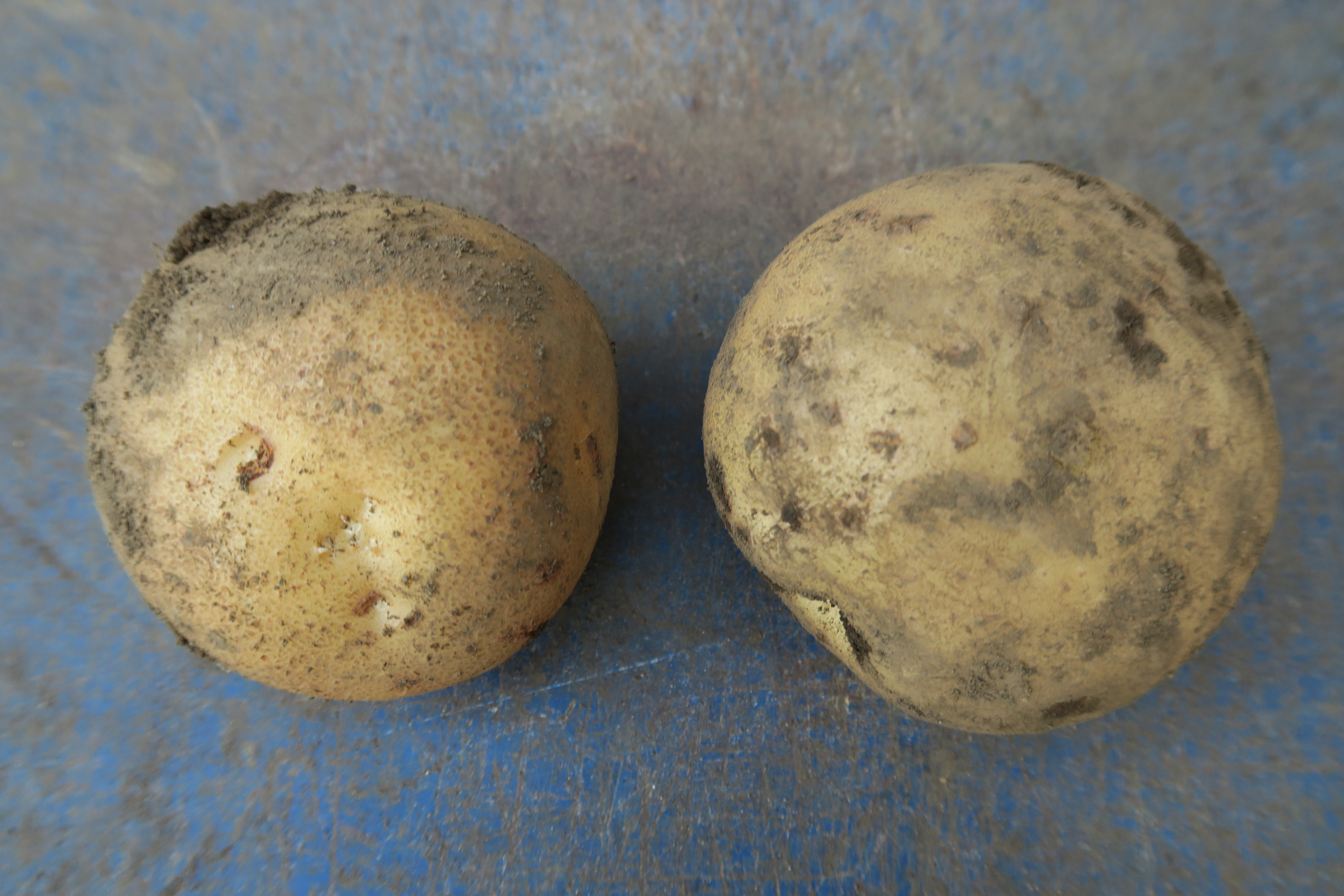 じゃがいもが2つ並んでいる写真、1つは“キタアカリ”、1つは“とうや”という品種だそうです。皆さんは見分けがつきますか?