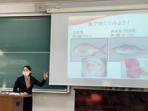 スポーツ栄養士になるために必要なこと、求められる要素など、実際に携わっている方だから聞くことが出来る貴重な授業に、学生たちもメモをたくさん取りながら聞き入っていました。