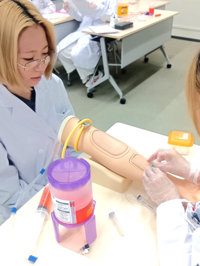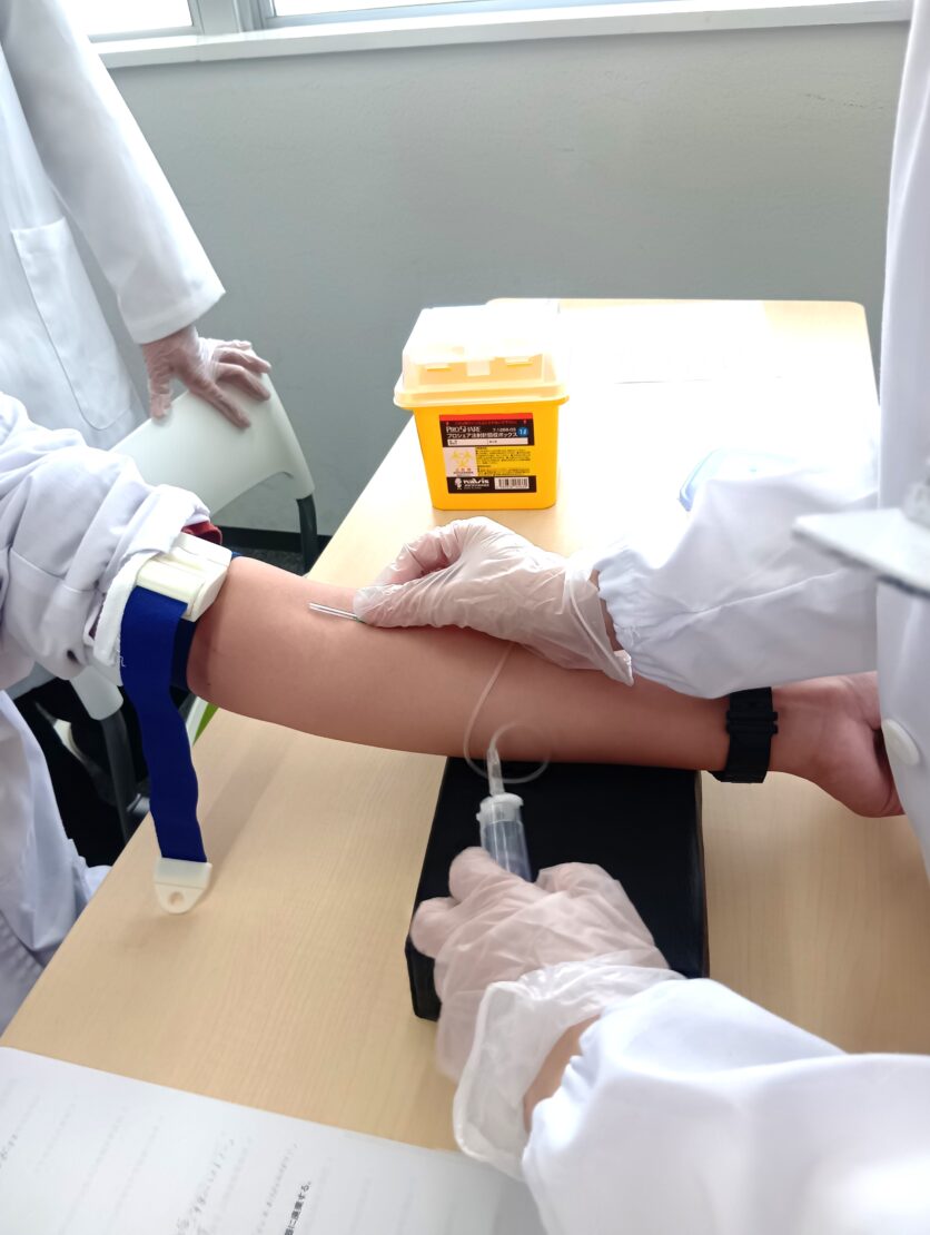 > 2025.10.08 🔬臨床検査学科:初めての採血実習実践❕❕ イベント 臨床検査 ホームキャンパスブログイベント🔬臨床検査学科:初めての採血実習実践❕❕ 2年生の医療安全管理学実習で、採血🩸の実習をおこないました。 前回の実習では、手順をしっかり学習したので、今回はいよいよ実践です。 模擬腕ですが、針を用いるのは緊張しますね 緊張のあまり、患者さん役の学生さんへの声かけを忘れそうになりますが、それではいけませんね。 患者さんに安全で正しい手技で採血ができるように、これからも練習を続けます😊 臨床検査学科では絶賛オープンキャンパス開催中! 詳しくはこちらをご覧ください。 前の記事へ🔬臨床検査学科:未来を創る先輩たちのストーリーVol.2 次の記事へ🔬臨床検査学科:今日はゼミ活動の様子をお届け👀✨ Campus Blog同じカテゴリーの記事 2026.02.25 🔬臨床検査学科:フィギュアスケート大会「St. Valentine Cup」に、本学1年生の西島優香さんが出場しました⛸️✨ イベントサークルその他ブログ 臨床検査 2026.02.21 🔬臨床検査学科:2年生・技能修得達成度評価【患者接遇】 イベントブログ授業リポート 臨床検査 2026.02.17 🔬臨床検査学科:2年生・技能修得達成度評価【病理検査学】 イベントその他ブログ授業リポート 臨床検査 2026.02.16 🔬臨床検査学科:国家試験がんばれ! イベントその他ブログ 臨床検査 2026.02.10 フードデザイン学科:入学予定者限定イベント『NITOBEキャンパスライフ先取りDAY』が行われました🌟 イベントブログ 食物栄養学科・フードデザイン 2026.02.07 フードデザイン学科:上級救命講習 開催 -命を守る力を、あなたの手に- イベントブログ 食物栄養学科・フードデザイン 2026.02.06 フードデザイン学科:卒業研究発表会 ~誰かの幸せにつながる「食」の研究~ イベントブログ授業リポート 食物栄養学科・フードデザイン 2026.02.06 🔬臨床検査学科:国家試験合格祈願✨ イベントその他ブログ 臨床検査
