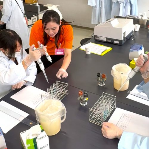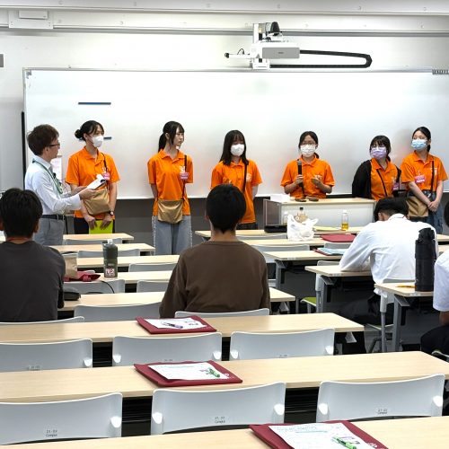 夏休み期間のオープンキャンパスもあって、臨床検査学科の学生さん達もお手伝いに参加してくれました。
