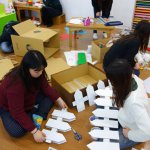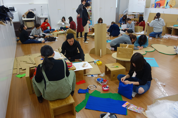 ダンボールを基本として、グループで協働して遊具を作っていきます。