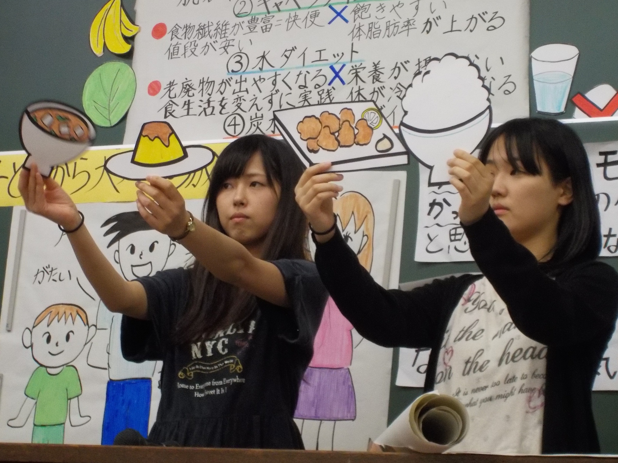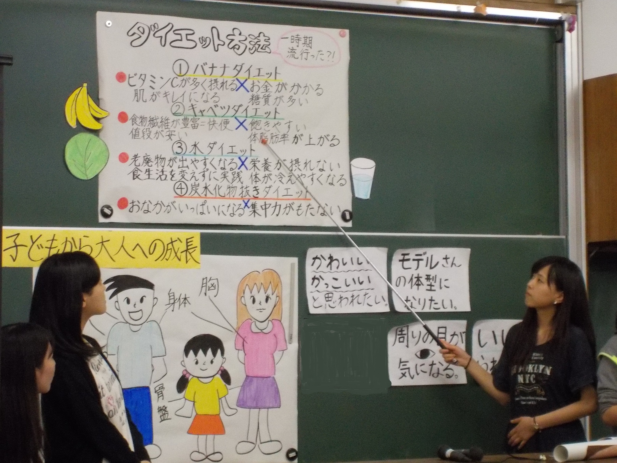 2014.06.09 生活学科 食物栄養専攻2年生 栄養教育実習Ⅱ ブログ ホームキャンパスブログブログ生活学科 食物栄養専攻2年生 栄養教育実習Ⅱ 今日の「栄養教育実習Ⅱ」は栄養教育の実演2回目となります。 今回は中学生対象「間違ったダイエット」、老年期対象「一人できる簡単料理の工夫」等です。 栄養教育を行う上で大切なことは、それぞれの対象者に合わせることです。 指導内容、話し方、声のトーン、言葉遣い、媒体の見やすさなど ひとつひとつに気を配りながら、対象者に合わせた方法を学んでいきます。 K.O 前の記事へ休講になりました(臨検) 次の記事へ生活学科:食物栄養専攻2年生 『栄養士キャリアアップ講座』 Campus Blog同じカテゴリーの記事 2026.02.25 🔬臨床検査学科:フィギュアスケート大会「St. Valentine Cup」に、本学1年生の西島優香さんが出場しました⛸️✨ イベントサークルその他ブログ 臨床検査 2026.02.21 🔬臨床検査学科:2年生・技能修得達成度評価【患者接遇】 イベントブログ授業リポート 臨床検査 2026.02.21 フードデザイン学科:事務局メンバーがリクルート進学総研のインタビュー記事に掲載されました🎤 インタビューブログ 食物栄養学科・フードデザイン 2026.02.17 🔬臨床検査学科:2年生・技能修得達成度評価【病理検査学】 イベントその他ブログ授業リポート 臨床検査 2026.02.16 🔬臨床検査学科:国家試験がんばれ! イベントその他ブログ 臨床検査 2026.02.10 フードデザイン学科:入学予定者限定イベント『NITOBEキャンパスライフ先取りDAY』が行われました🌟 イベントブログ 食物栄養学科・フードデザイン 2026.02.07 フードデザイン学科:上級救命講習 開催 -命を守る力を、あなたの手に- イベントブログ 食物栄養学科・フードデザイン 2026.02.06 フードデザイン学科:卒業研究発表会 ~誰かの幸せにつながる「食」の研究~ イベントブログ授業リポート 食物栄養学科・フードデザイン