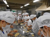 の3品。とてもおしゃれで本格的なメニューに、お客様からも驚きと喜びの声をいただきました。また、藤田先生には、イタリア料理や食材について教えていただいたり、プロの技を間近で見せていただき、とても楽しく学びの多い実習となりました。 M.S, C.K