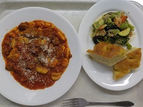 1.粉から作る手打ちパスタ「セモリナ粉のニョッキ」を、手作り粗挽きソーセージ肉とトマトソースで