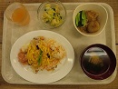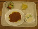 月曜日のメニューは、五目ちらし寿司、新じゃがのそぼろあんかけ、春きゃべつといんげんのえび塩ドレッシング、若竹汁、ピンクグレープフルーツゼリー、火曜日のメニューはドライカレー、春の旬菜サラダ、ベーコンの野菜のミルクスープ、角切りりんごゼリーでした♪初めての大量調理に緊張しながらも、お客様に安全でおいしい食事を提供しようと、一人ひとり心を込めて作りました。提供後、お客様のもとへ伺い、「おいしい」の言葉に、今日の緊張と疲れが吹き飛びました♪これからもお客様に美味しかったと喜んでいただけるような料理を提供できるように力をつけていきます!N.M