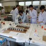 午後の病理検査学実習はクラスで分かれて、染色と薄切を行いました。
