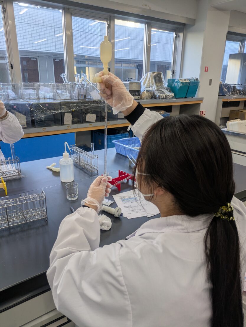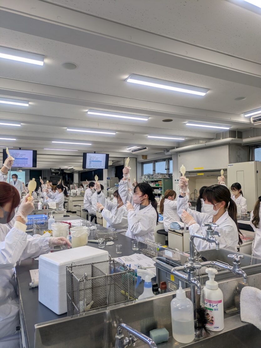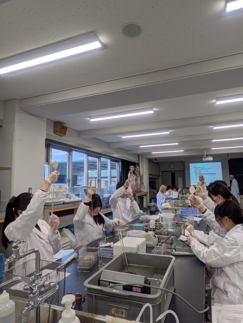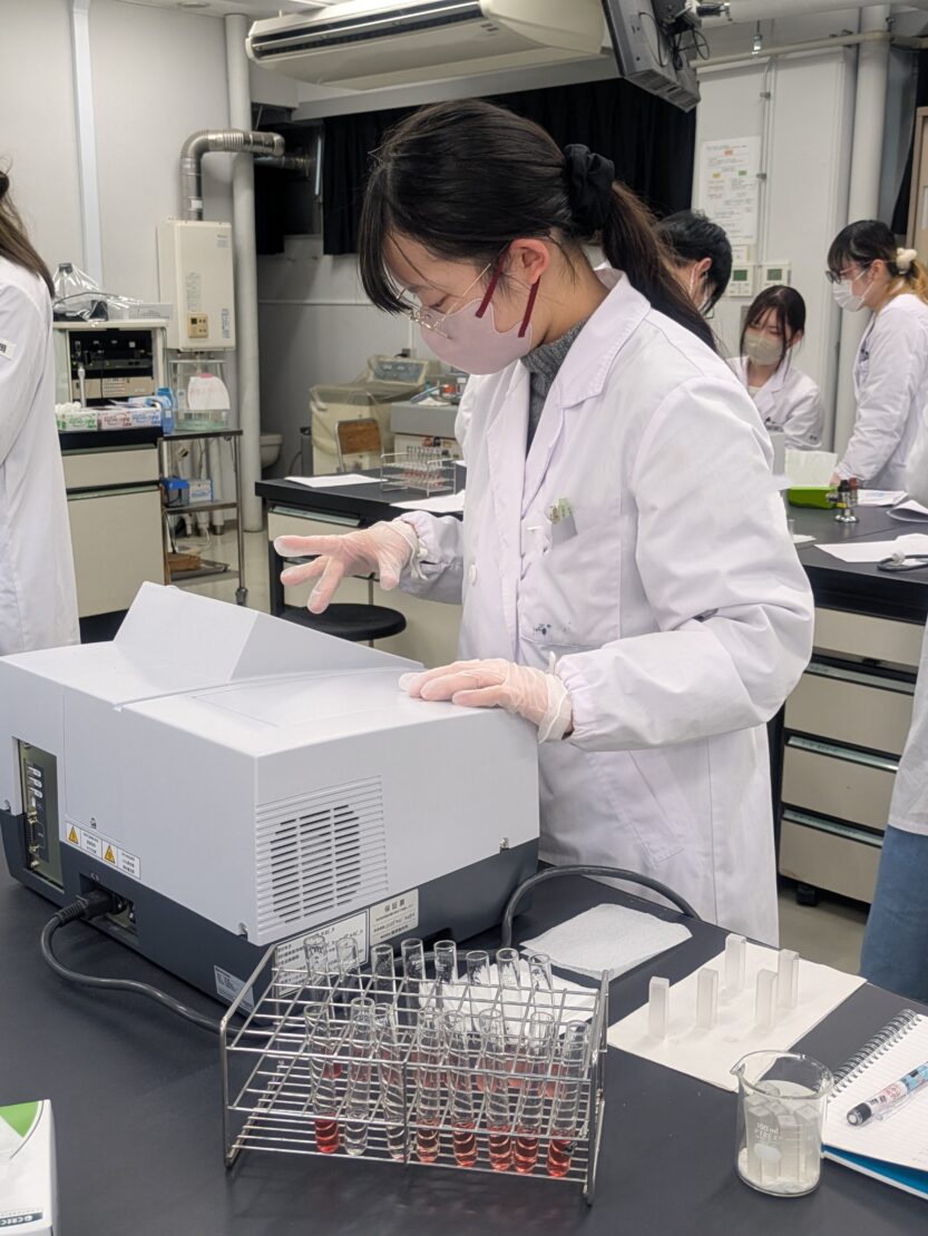 > 2025.11.28 🔬臨床検査学科:免疫検査学実習の様子(その2) ブログ 臨床検査 ホームキャンパスブログブログ🔬臨床検査学科:免疫検査学実習の様子(その2) 本日も前回に引き続き、免疫検査学実習の様子をお届けします💫️ 第2回では赤血球を用いて補体価(活性の指標)の測定を行いました‼️ 前期で鍛えられたおかげで、ピペットの扱いや分光光度計の操作がスムーズでした🎶😆 来年の臨地実習に向けて力をつけてほしいですね💪 臨床検査学科では絶賛オープンキャンパス開催中! ↓↓ 詳しくはこちらをご覧ください ↓↓ 前の記事へフードデザイン学科:楽しかったオープンキャンパス体験授業ランキング👑 次の記事へフードデザイン学科:カフェ講座開催 Campus Blog同じカテゴリーの記事 2026.02.25 🔬臨床検査学科:フィギュアスケート大会「St. Valentine Cup」に、本学1年生の西島優香さんが出場しました⛸️✨ イベントサークルその他ブログ 臨床検査 2026.02.21 🔬臨床検査学科:2年生・技能修得達成度評価【患者接遇】 イベントブログ授業リポート 臨床検査 2026.02.21 フードデザイン学科:事務局メンバーがリクルート進学総研のインタビュー記事に掲載されました🎤 インタビューブログ 食物栄養学科・フードデザイン 2026.02.17 🔬臨床検査学科:2年生・技能修得達成度評価【病理検査学】 イベントその他ブログ授業リポート 臨床検査 2026.02.16 🔬臨床検査学科:国家試験がんばれ! イベントその他ブログ 臨床検査 2026.02.10 フードデザイン学科:入学予定者限定イベント『NITOBEキャンパスライフ先取りDAY』が行われました🌟 イベントブログ 食物栄養学科・フードデザイン 2026.02.07 フードデザイン学科:上級救命講習 開催 -命を守る力を、あなたの手に- イベントブログ 食物栄養学科・フードデザイン 2026.02.06 フードデザイン学科:卒業研究発表会 ~誰かの幸せにつながる「食」の研究~ イベントブログ授業リポート 食物栄養学科・フードデザイン