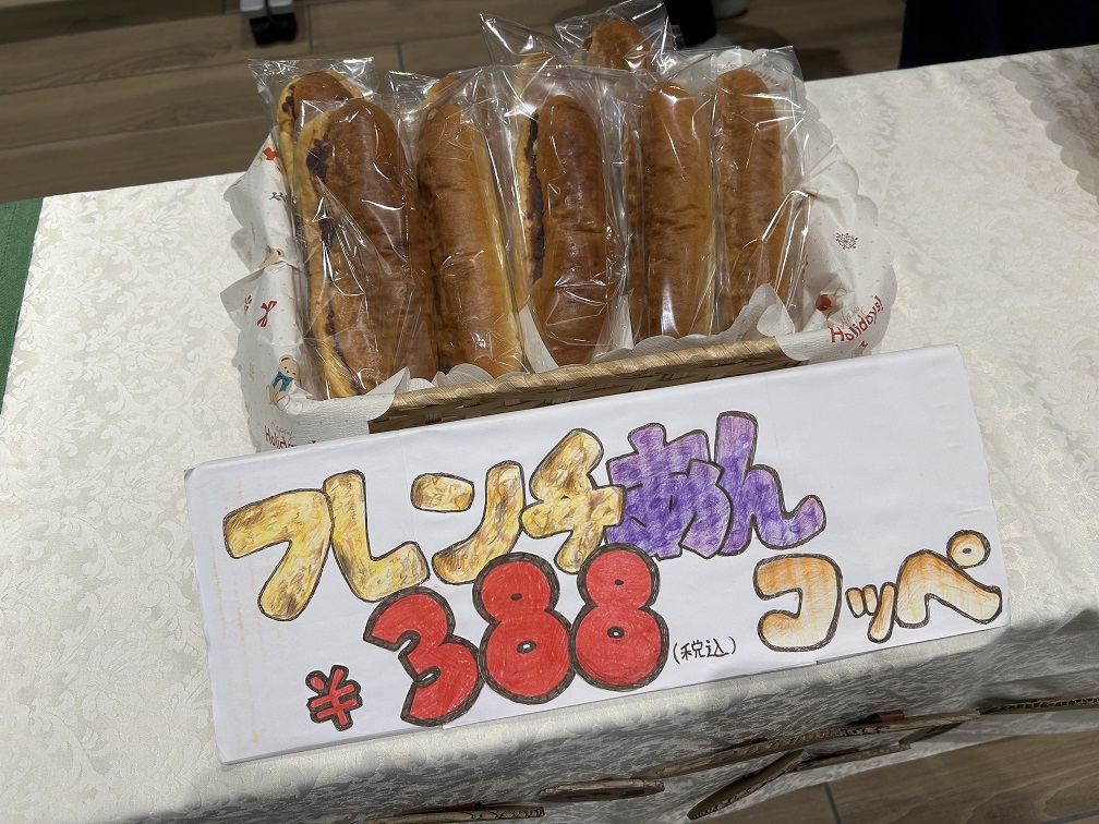 販売したのは「フレンチあんコッぺ」と「ピーナッツバターコロッケパン」の2種類。一生懸命研究し、試行錯誤の上、商品化に至りました。想いがたっぷり詰まったパンです。
