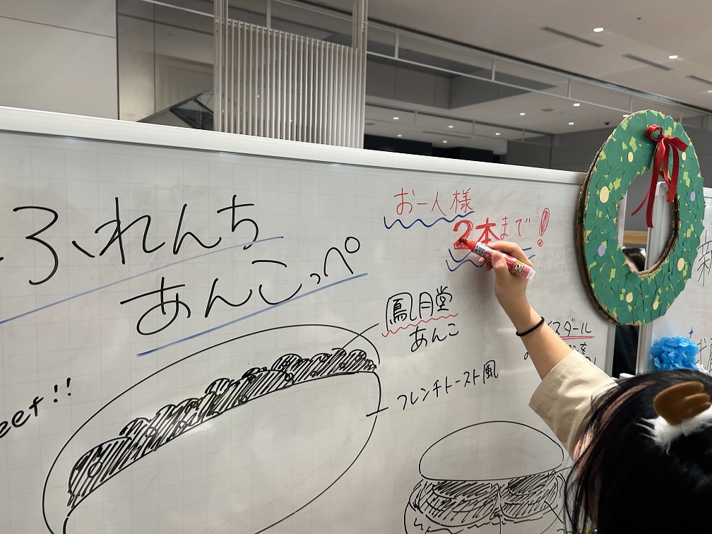 本講座は、学生が商品企画、マーケット調査、そして販売までを行う実践的な授業です。今年度のテーマは「中野区名物になるようなコッペパンを作る」でした。