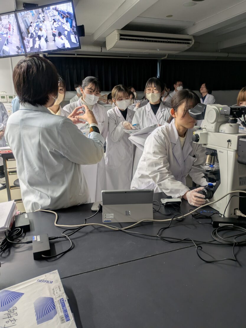 検体調整から鏡検まで行い、代表的な染色像を実際に見て学ぶことができました😊