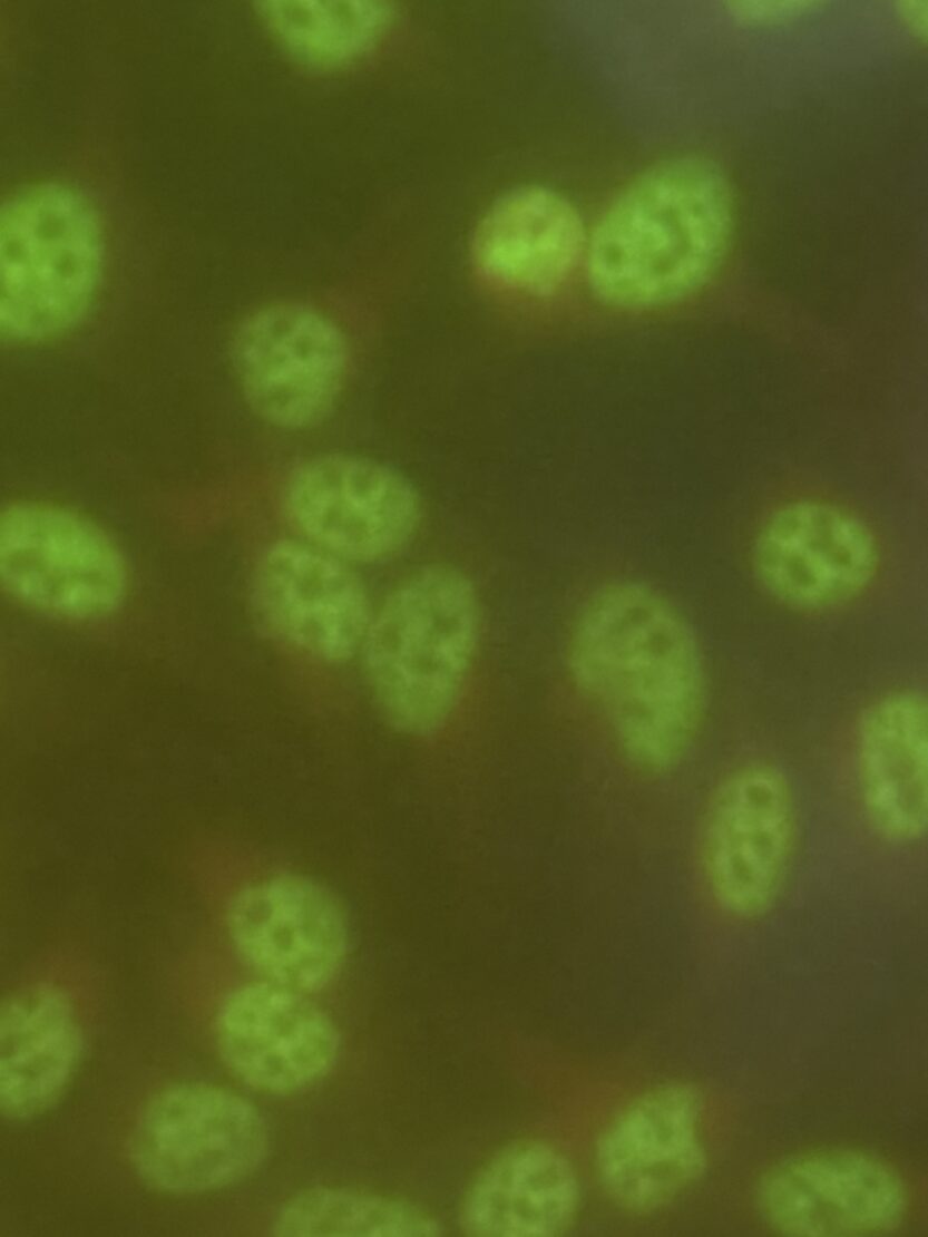 細胞の”核”に対する自己検体があるかどうか調べる検査です🕵