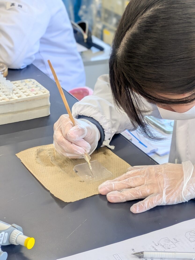 オクタロニー法、免疫電気泳動法、免疫固定法を実施し、抗原と抗体の反応について詳しく学びました!
