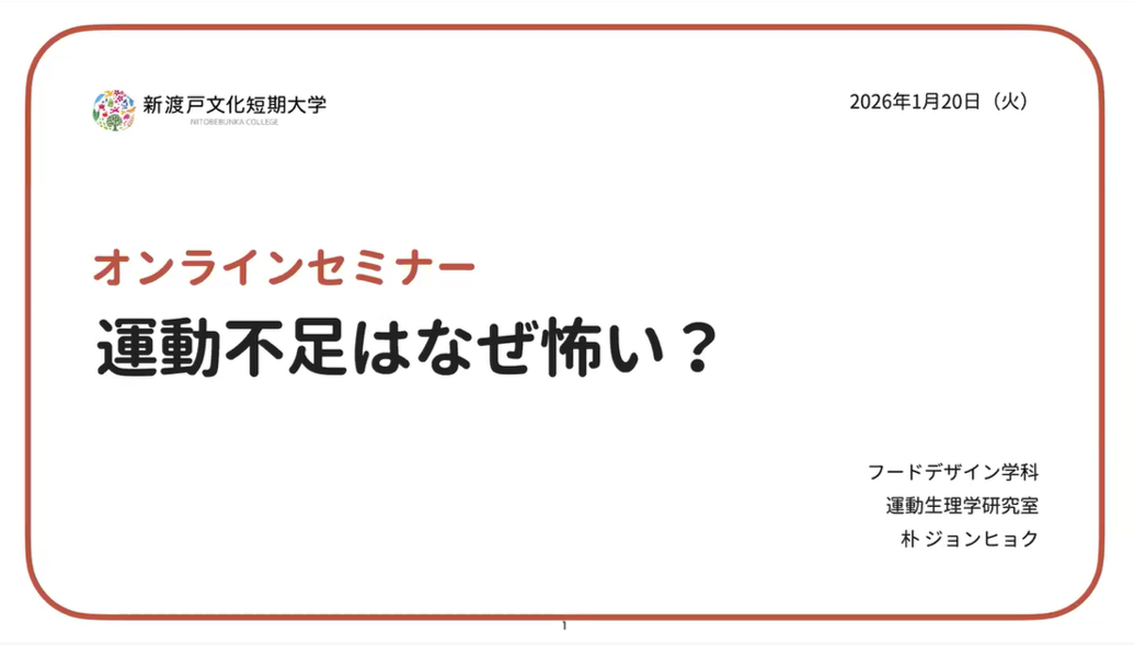 セミナーのテーマは「運動不足はなぜ怖い?」です。