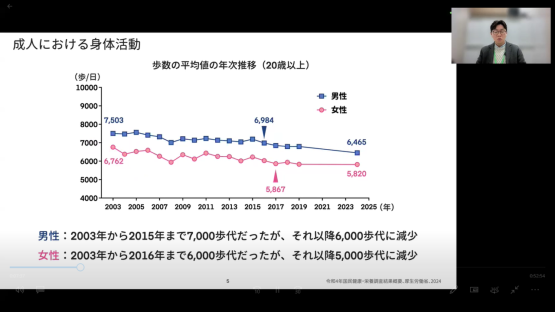 厚生労働省の調査によると成人の歩行数は年々減少しています。