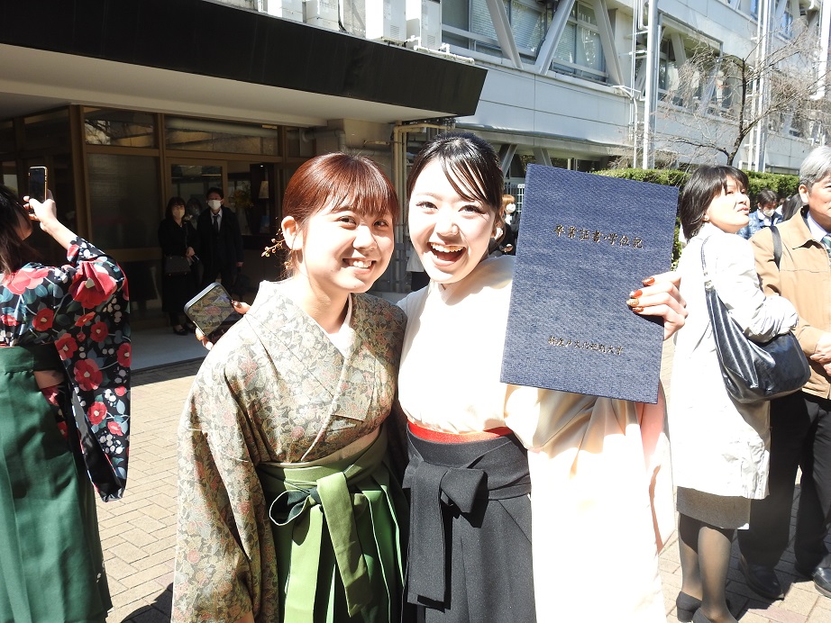 式後に撮影した写真には、色鮮やかな袴やスーツが光を受けてきらめき、笑顔がまるで花束のように咲き誇っていました。 仲間と過ごした時間、積み重ねた努力、胸に抱いた夢——そのすべてが今日という特別な日に、華やかな輝きとなって映し出されています。
