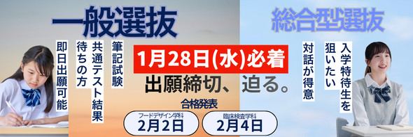 「総合型選抜」「一般選抜」「既卒・社会人選抜」とそれぞれ特色が異なる入試形態です。