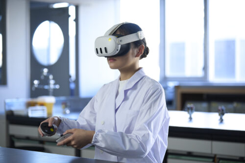 実習では1人1台の顕微鏡を占有。「NITOBE Training Lab」での実習により、実際の医療の最前線で使われている機器の扱いも取得できます。さらに2026年からはVRも活用。3Dモデルを利用した採血体験などリアルな技術を身につけられます。