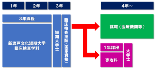 3年間で臨床検査技師の国家資格を取得し、さらに1年間の学びを通して専門性を高め、